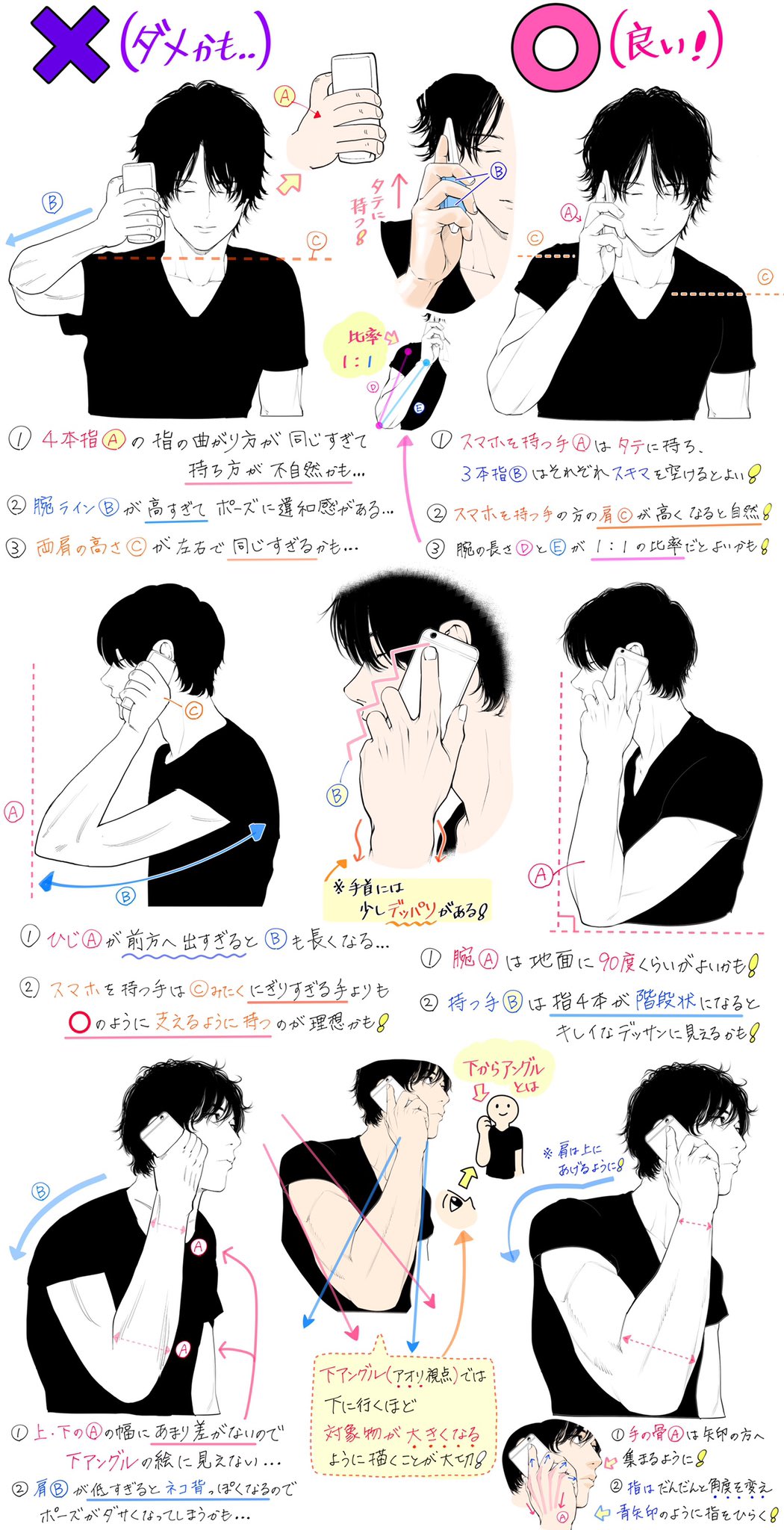 吉村拓也 イラスト講座 Ar Twitter 電話で話すポーズの描き方 スマホを持つ体のデッサンが上達する ダメかも と 良いかも